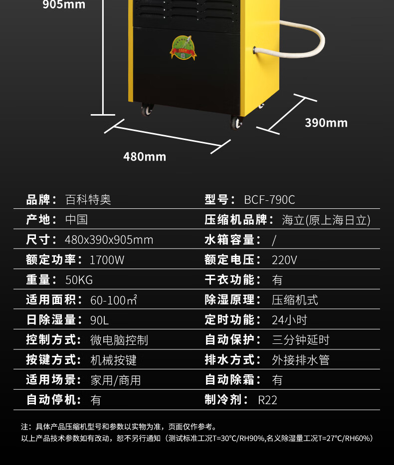 除湿量:需要根据需要除湿的面积和湿度来选择合适的除湿机。