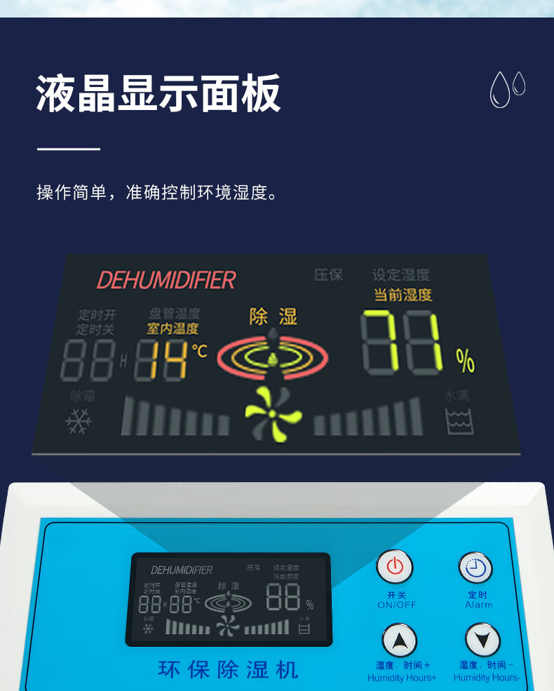 (1)除湿量:根据实际需要除湿的面积和高度,选择适当的除湿机型号。